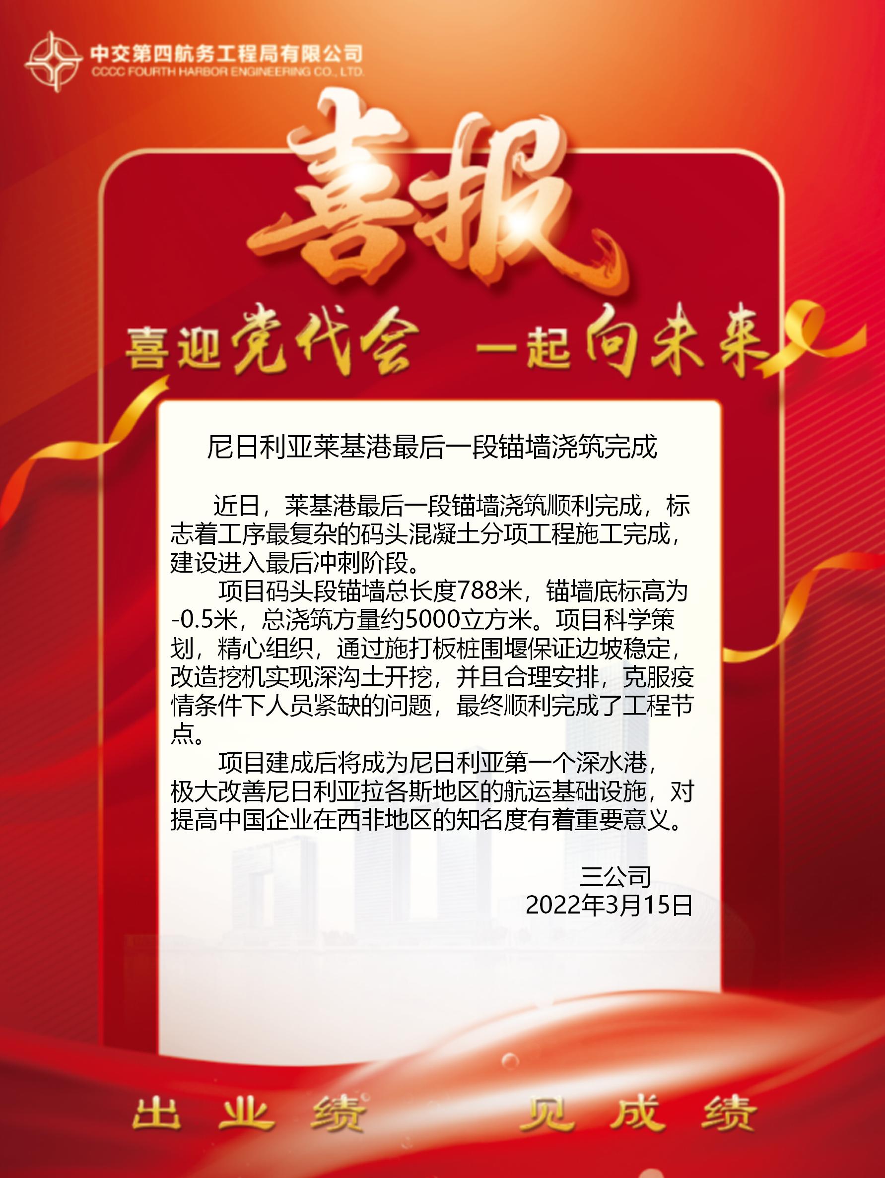 尼日利亞萊基港最后一段錨墻澆筑完成