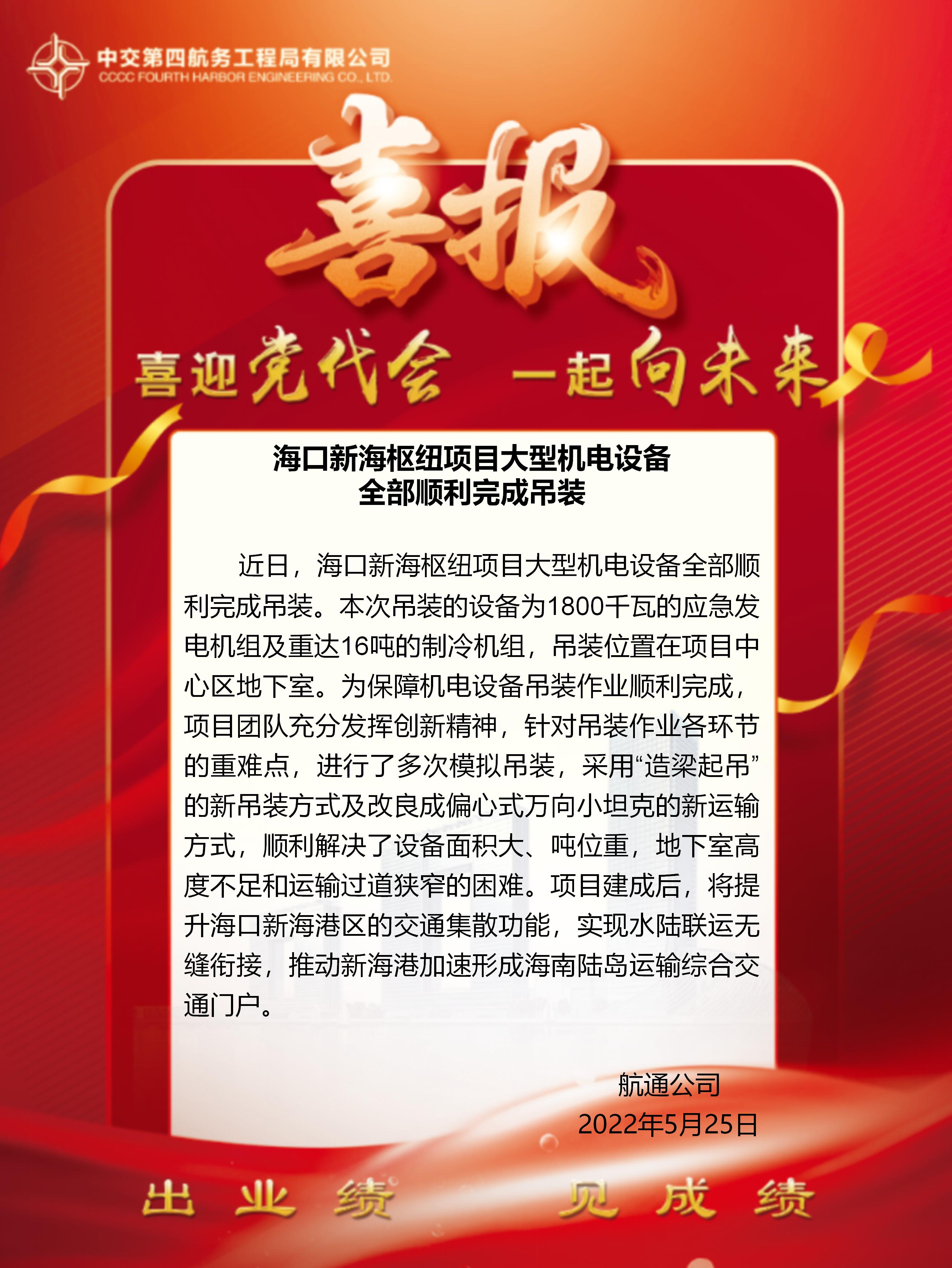 ??谛潞屑~項目大型機電設(shè)備全部順利完成吊裝