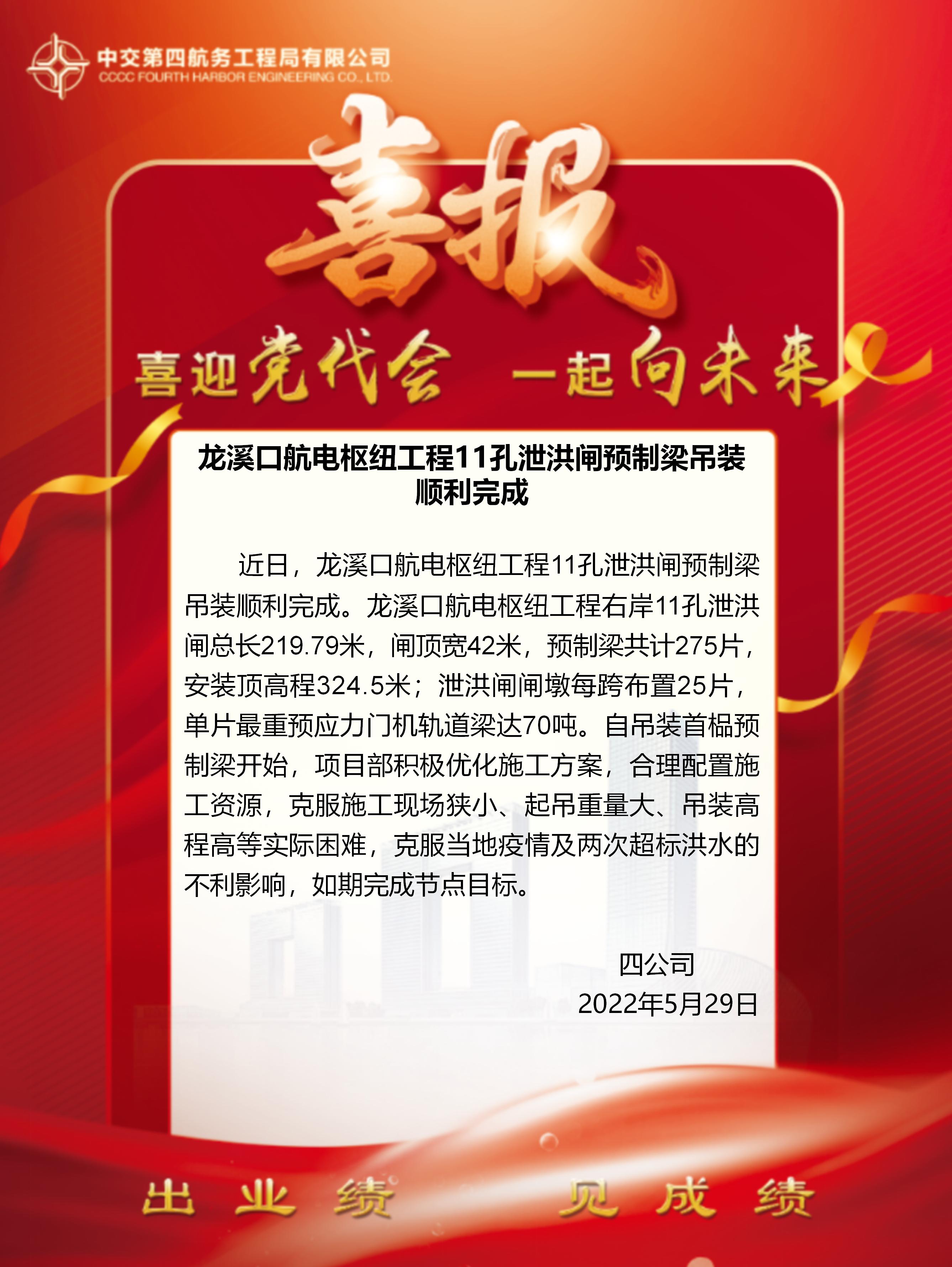 龍溪口航電樞紐工程11孔泄洪閘預(yù)制梁吊裝順利完成
