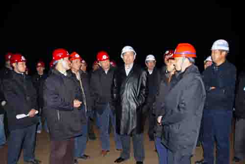 10月30日,中交股份總裁孟鳳朝、總工程師林鳴、基建部總經(jīng)理唐永勝、中交哈大副指揮長(zhǎng)、黨委副書(shū)記胡清江一行在四航局副總經(jīng)理羅寬榮、周達(dá)培、一公司總經(jīng)理方嘉煊等的陪同下,冒著雨雪交加、大風(fēng)泥濘的惡劣天氣到四航局哈大經(jīng)理部視察指導(dǎo)工作。