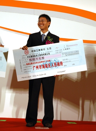 同時,海珠區(qū)人民政府在會上對海珠區(qū)重點總部企業(yè)納稅大戶進行獎勵,分別獎勵四航局與航通公司50萬元整和20萬元整。