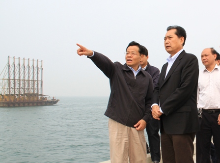 3月31日,廣西壯族自治區(qū)副主席陳武一行在廣西北部灣國(guó)際集團(tuán)董事長(zhǎng)葉時(shí)湘、中國(guó)石油國(guó)際事務(wù)部總經(jīng)理張軍的陪同下,到欽州港大欖坪保稅港區(qū)3-8號(hào)泊位碼頭工程考察。