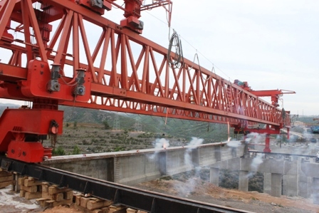 溫河大橋主橋是該項(xiàng)目的重點(diǎn)控制性工程。為確保溫河大橋按期交工,項(xiàng)目部統(tǒng)籌安排,利用冬季施工增建一座T梁預(yù)制場,有效加快了制梁速度,并進(jìn)場兩臺架橋機(jī)從大橋兩端同時(shí)架梁,小里程方向架橋機(jī)已調(diào)試完成,架梁工作計(jì)劃隨后展開。
