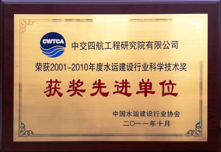 近日,研究院獲得由中國水運建設(shè)行業(yè)協(xié)會頒發(fā)的2001-2010年度水運建設(shè)行業(yè)科學(xué)技術(shù)獎“獲獎先進單位”榮譽稱號。