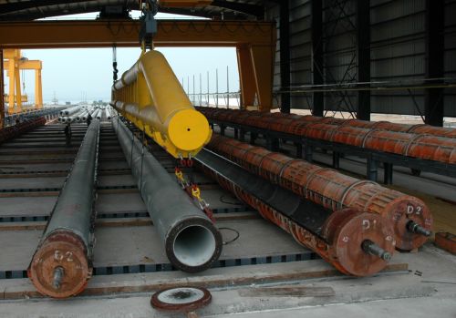 我局聯(lián)營(yíng)的江門裕大管樁廠順利建成,近日試產(chǎn)成功,一次成型單樁長(zhǎng)50米、直徑1.2 米,為國(guó)內(nèi)首創(chuàng)、世界一流。