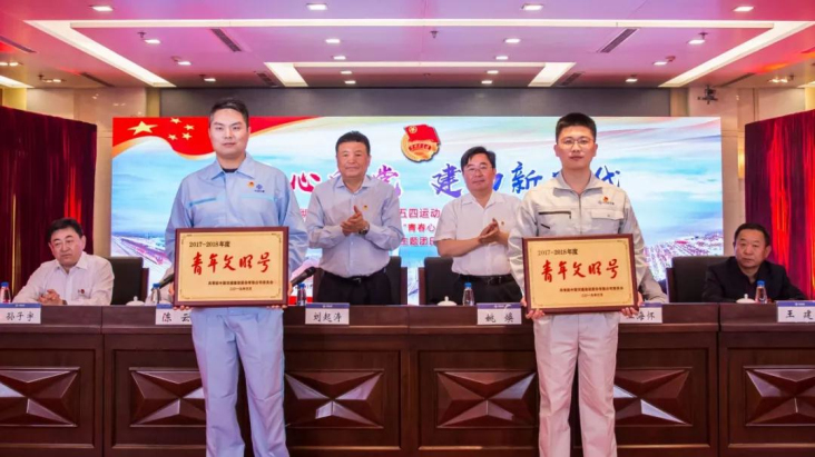 劉起濤與姚煥一同為獲得“中國(guó)青年五四獎(jiǎng)?wù)录w”榮譽(yù)的四航局港珠澳大橋島隧工程項(xiàng)目部等集體頒發(fā)了“中國(guó)交建青年文明號(hào)”榮譽(yù)。