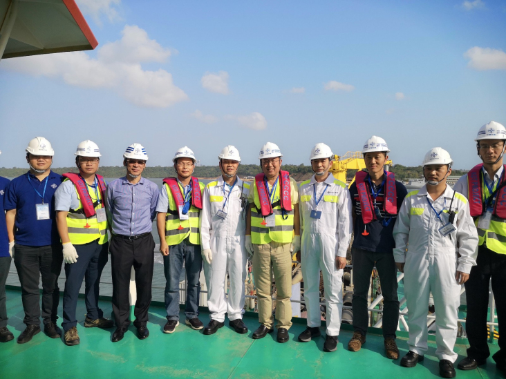 吳鵬先后視察了四航局項(xiàng)目部營地,現(xiàn)場辦公區(qū),并登船檢查了疏浚作業(yè)情況。檢查過程中,吳鵬詳細(xì)了解了KOT項(xiàng)目施工情況和工藝概況,重點(diǎn)詢問了項(xiàng)目重難點(diǎn)及雙節(jié)期間相關(guān)的安全保障措施。他要求,項(xiàng)目部在祖國70周年華誕之際,緊抓“防風(fēng)險(xiǎn),保安全,迎大慶”主線,確保施工安全和施工質(zhì)量,為國家樹立良好的國際形象,為祖國的70華誕獻(xiàn)禮。